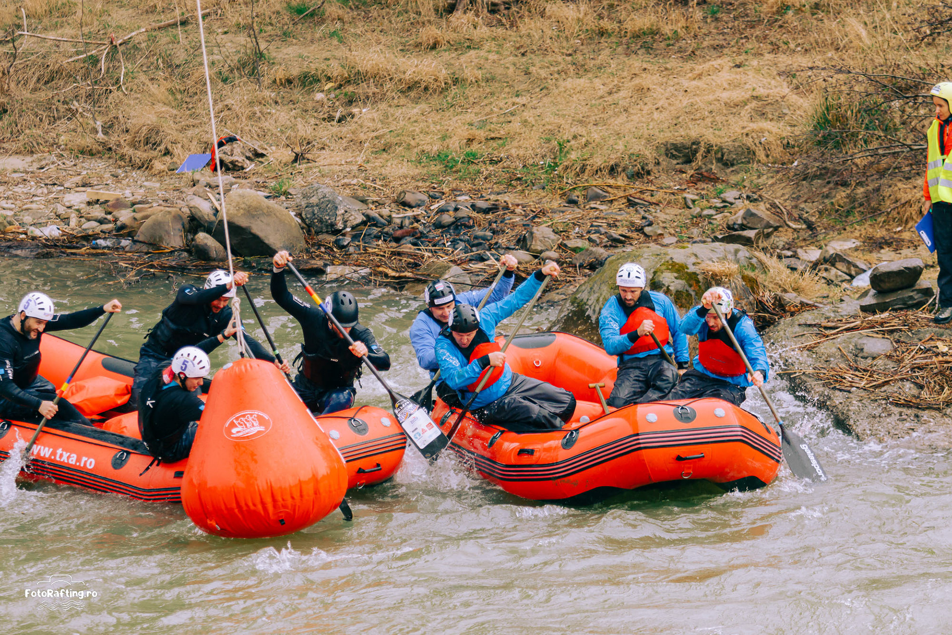 Beginning of April marked the beginning of raft races on Europe`s natural rivers with the now at its sixth edition Dracula Race. Three ladies teams and 13 men`s teams from Bosnia, UK and Romania raced over 2 days on the 40 cms flow of Buzau river enjoying all 4 disciplines and a little bit of party under the rain / no rain / rain again moody weather of Romanian spring. The competition is held under the race rules of International Rafting Federation with IRF Judges and race management. Disciplines: Sprint, H2H, Slalom, Downriver Categories: R4 Open Men, Open Women, Masters Men. Location: Nehoiu, Buzau County, Romania Race Headquarters: Arca Rafting Camp River: Buzau, class 2-3. Flow: 30 - 40 cms